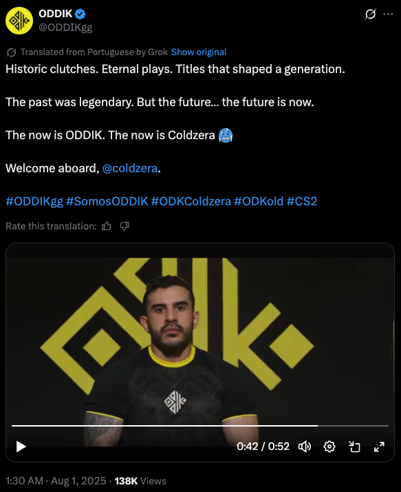 Coldzera will debut for his new team on Friday, in the South American BLAST Rising event – Ace South American Masters Fall 2025 – when ODDIK clash with DESEMPREGUEIDOS.